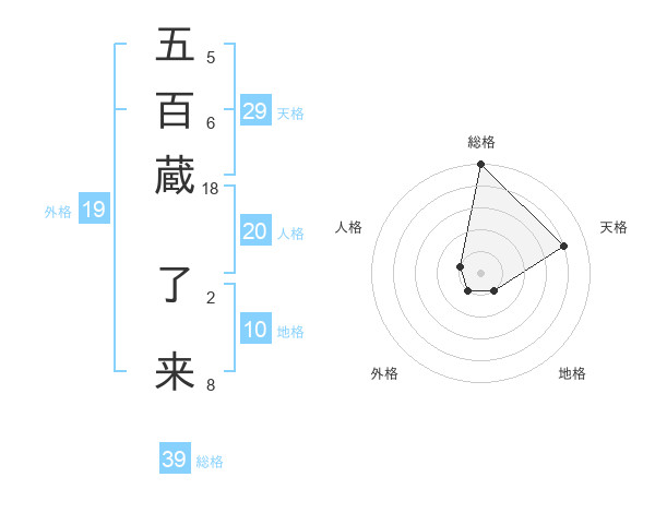 五百蔵 了来さんを姓名の画数から五運を鑑定