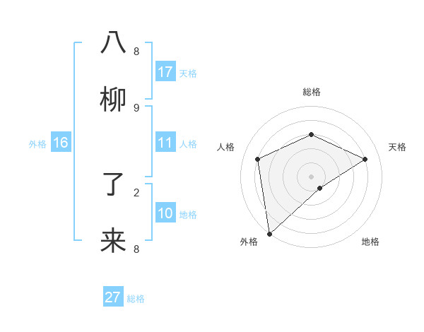 八柳 了来さんの総格は27画の3点!