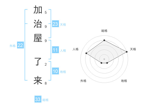 加治屋 了来さんを姓名の画数から五運を鑑定