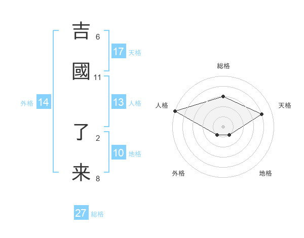 吉國 了来さんの天格は17画の4点!