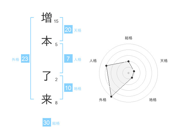 増本 了来さんの天格は20画の1点!