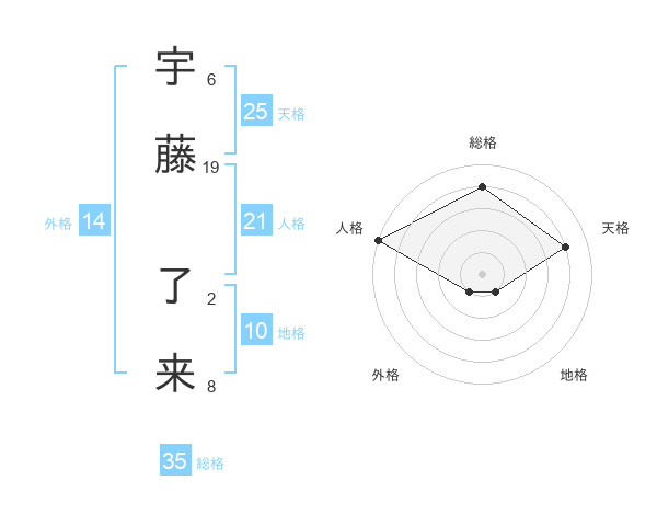 宇藤 了来さんを姓名の画数から五運を鑑定