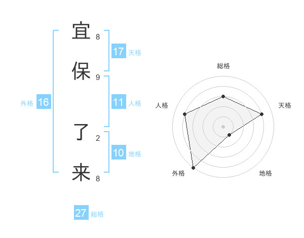宜保 了来さんの総格は27画の3点!