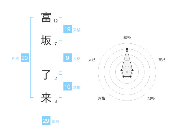 富坂 了来さんの総格は29画の4点!
