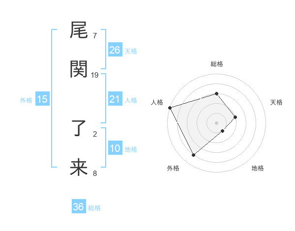 尾関 了来さんの天格は26画の2点!