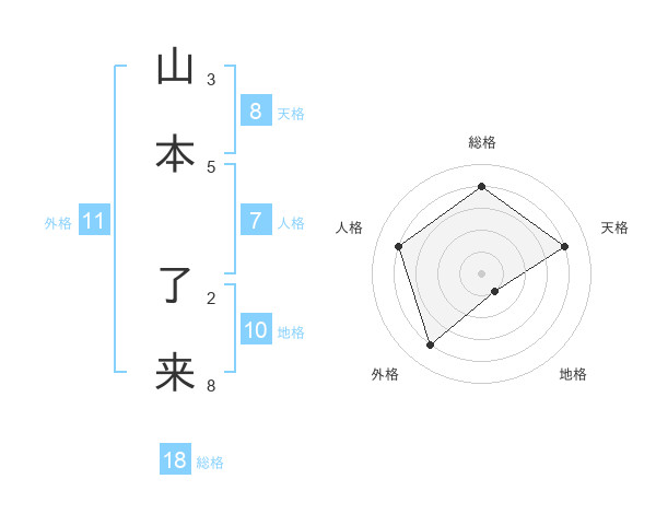 山本 了来さんの天格は8画の4点!