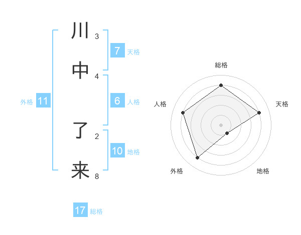 川中 了来さんの外格は11画の4点!