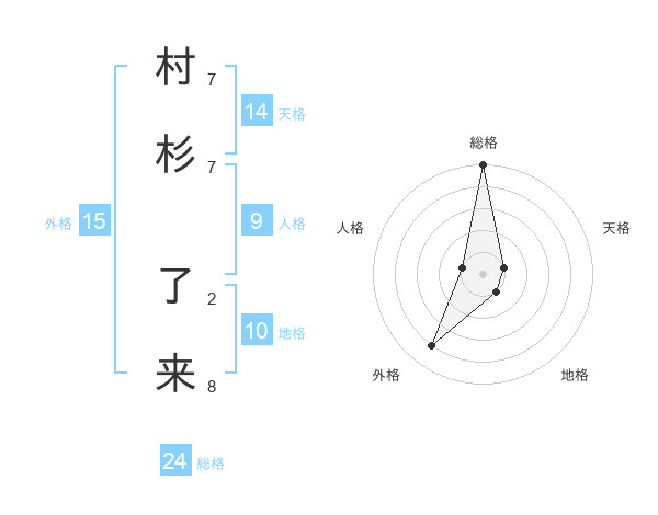 村杉 了来さんの総格は24画の5点!