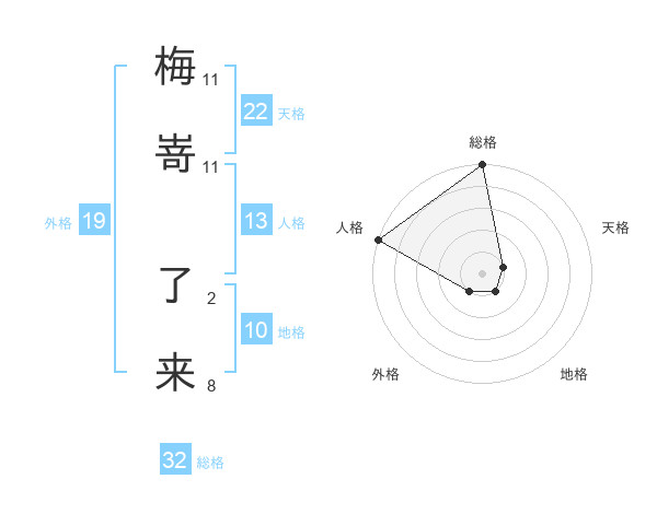 梅嵜 了来さんを姓名の画数から五運を鑑定