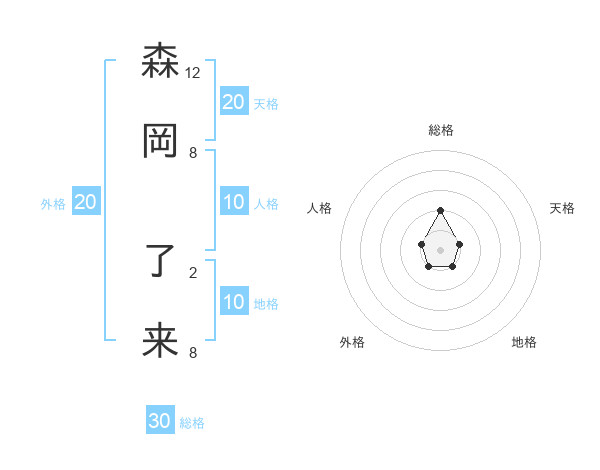 森岡 了来さんの天格は20画の1点!