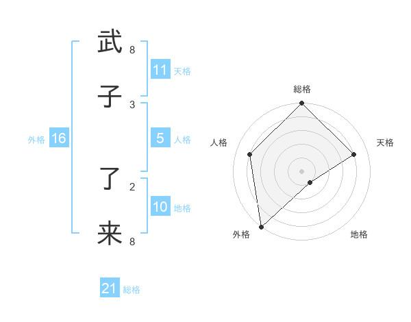 武子 了来さんの総格は21画の5点!