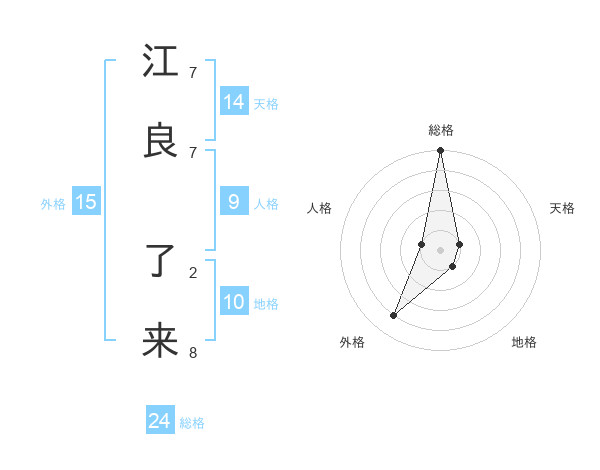 江良 了来さんの総格は24画の5点!