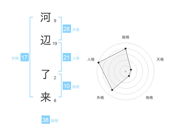 河辺 了来さんの総格は38画の4点!