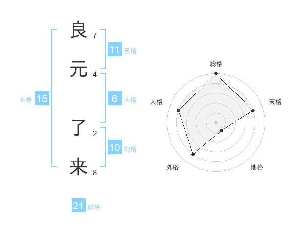 良元 了来さんの総格は21画の5点!