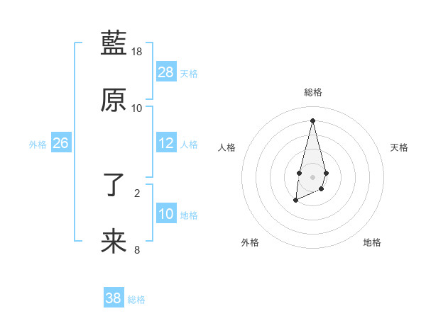 藍原 了来さんの総格は38画の4点!