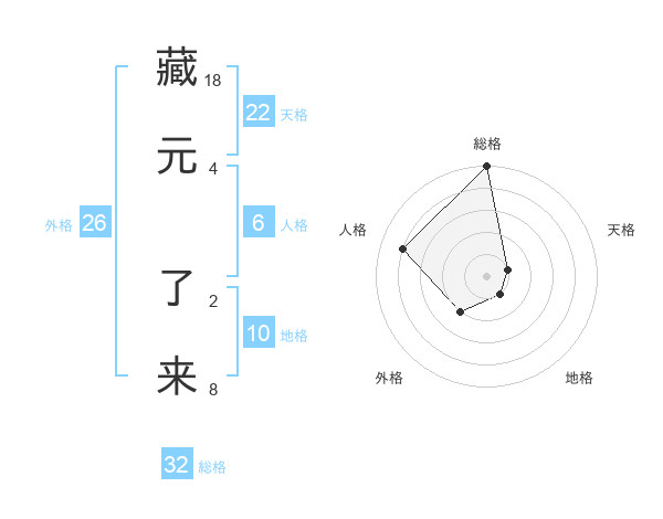 藏元 了来さんの総格は32画の5点!
