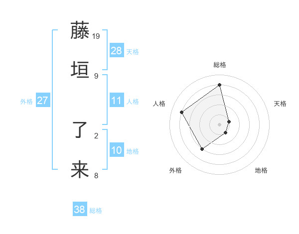 藤垣 了来さんの総格は38画の4点!