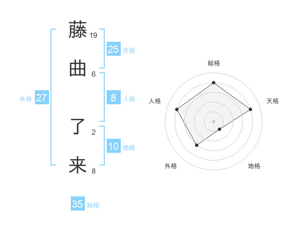 藤曲 了来さんの総格は35画の4点!