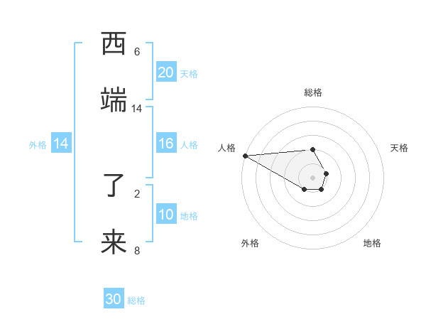 西端 了来さんの天格は20画の1点!