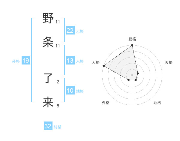 野条 了来さんの総格は32画の5点!