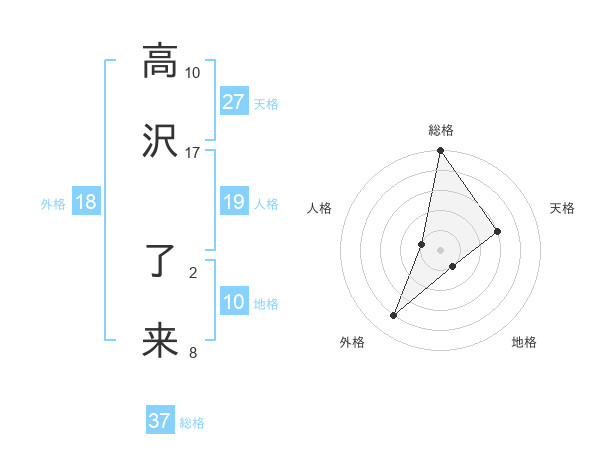 高沢 了来さんの総格は37画の5点!