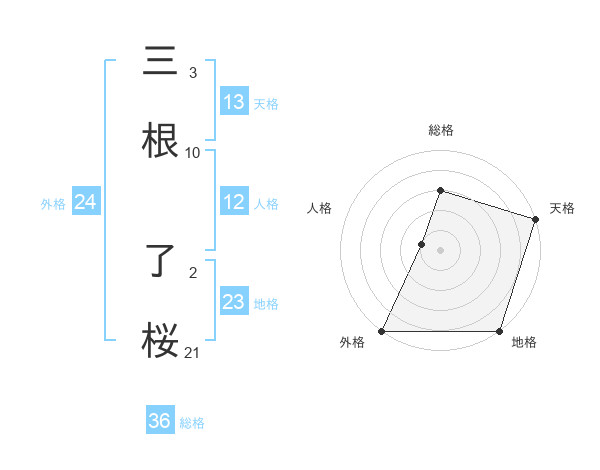 三根 了桜さんの天格は13画の5点!