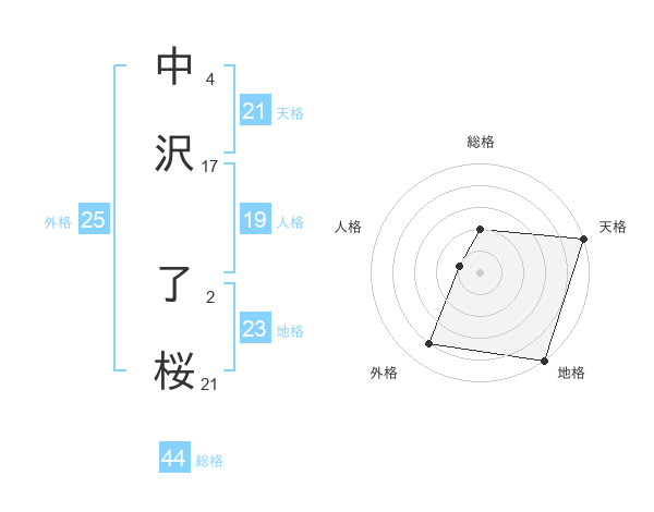 中沢 了桜さんの天格は21画の5点!