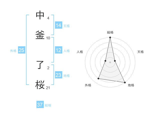 中釜 了桜さんの総格は37画の5点!