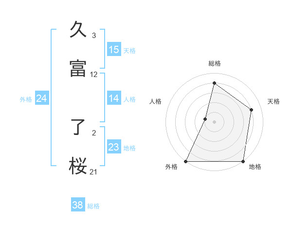 久富 了桜さんの外格は24画の5点!
