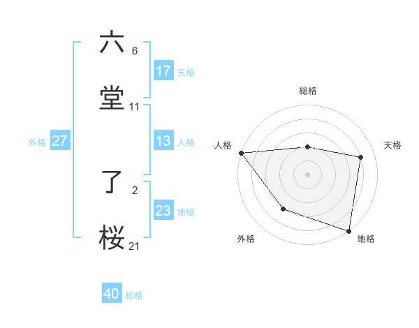 六堂 了桜さんを姓名の画数から五運を鑑定