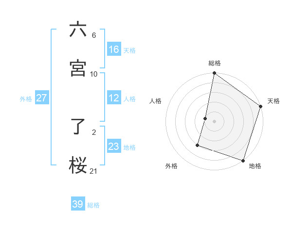 六宮 了桜さんの天格は16画の5点!