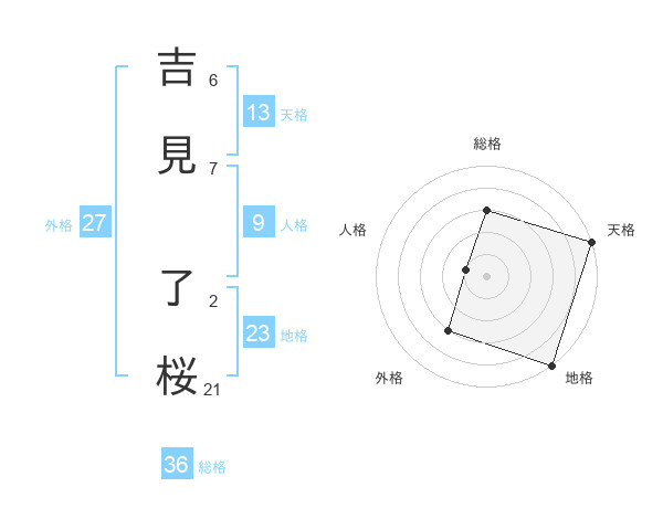 吉見 了桜さんを姓名の画数から五運を鑑定