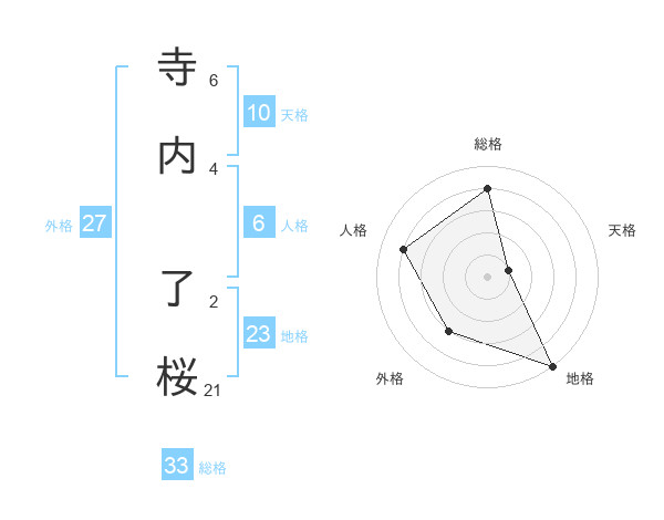 寺内 了桜さんの総格は33画の4点!