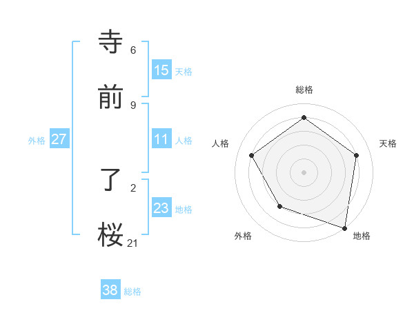 寺前 了桜さんの総格は38画の4点!