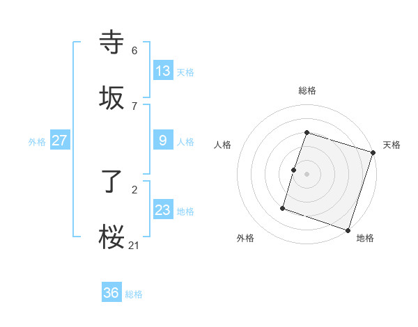 寺坂 了桜さんを姓名の画数から五運を鑑定