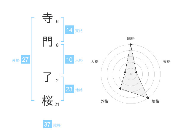 寺門 了桜さんを姓名の画数から五運を鑑定