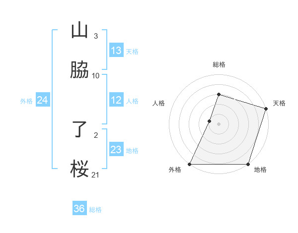 山脇 了桜さんの総格は36画の3点
