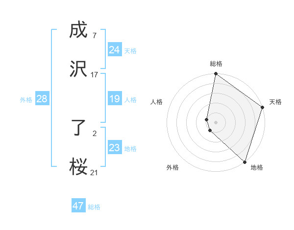 成沢 了桜さんの総格は47画の5点!