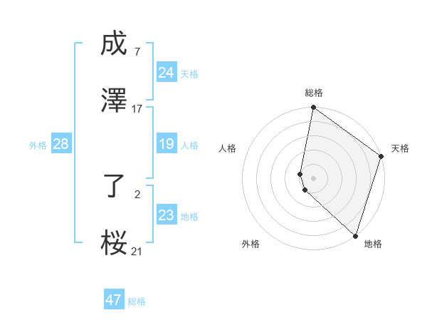 成澤 了桜さんを姓名の画数から五運を鑑定