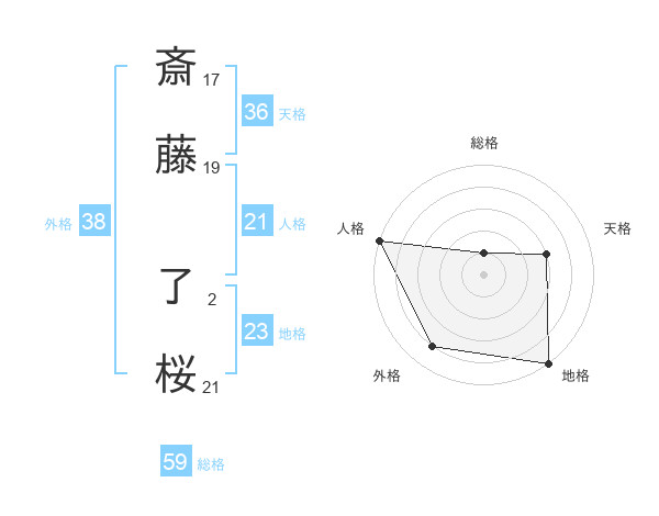 斎藤 了桜さんを姓名の画数から五運を鑑定