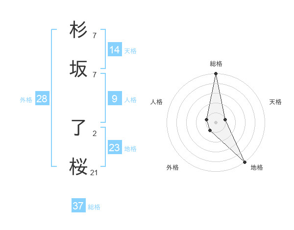 杉坂 了桜さんの総格は37画の5点!