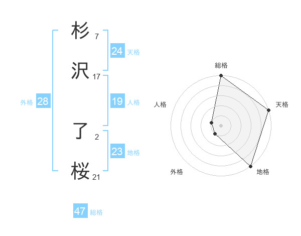 杉沢 了桜さんを姓名の画数から五運を鑑定