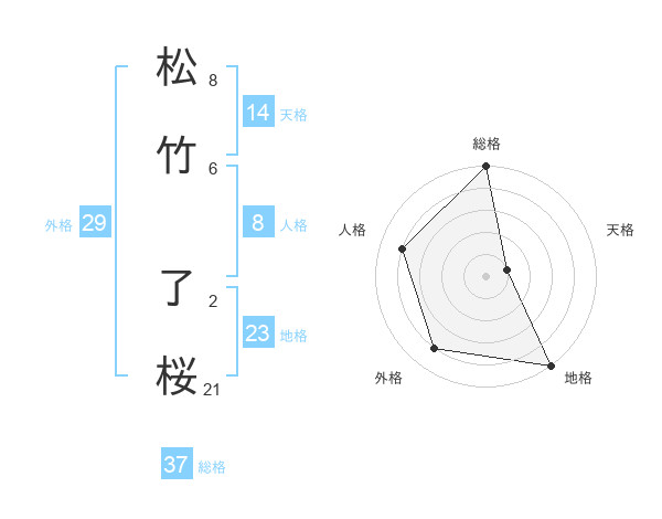 松竹 了桜さんを姓名の画数から五運を鑑定