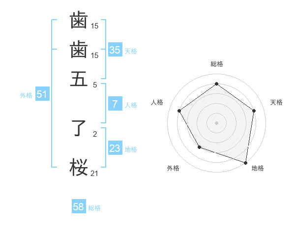 歯歯五 了桜さんの外格は51画の3点!
