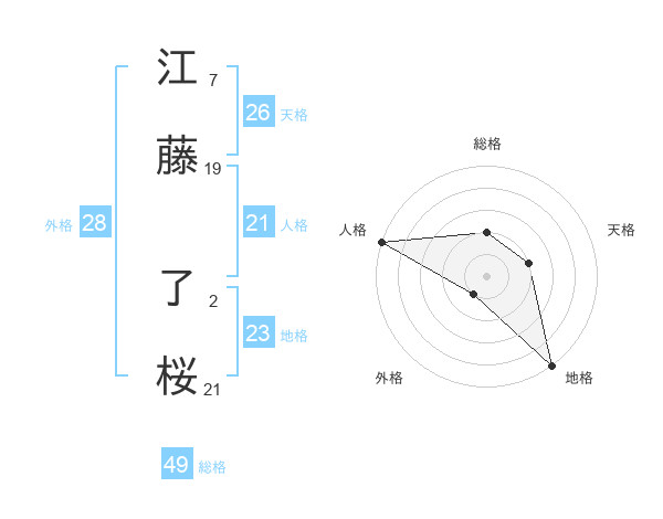 江藤 了桜さんを姓名の画数から五運を鑑定