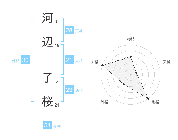 河辺 了桜さんを姓名の画数から五運を鑑定