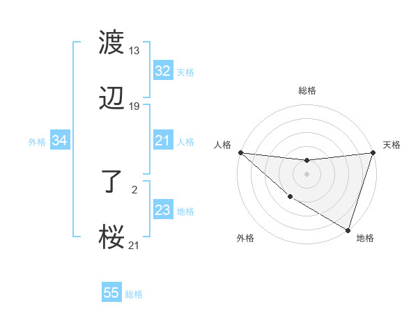 渡辺 了桜さんの天格は32画の5点!