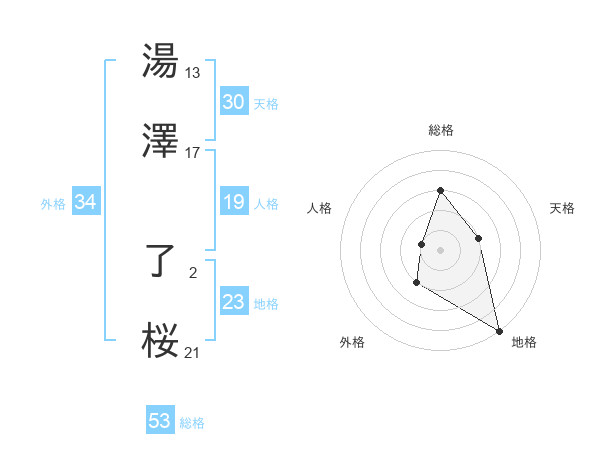湯澤 了桜さんの総格は53画の3点!