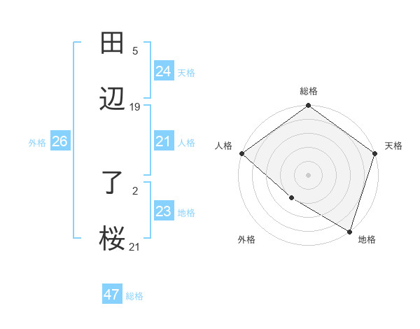 田辺 了桜さんの天格は24画の5点!