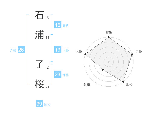 石浦 了桜さんの天格は16画の5点!